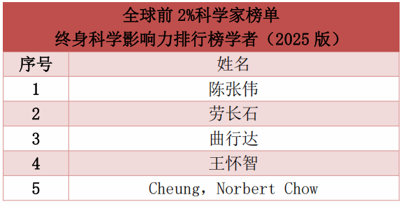 据悉,该榜单使用如下六种关键因素综合评估来进行打分:总引用量、Hirsch H-index、共同作者修正的Schreiber Hm-index、单独作者、单独或者第一作者,单独、第一或者通讯作者的文章引用量,提供一个面向科学家长期科研表现的衡量指标,希望能够更客观、更真实反映科学家的影响力。