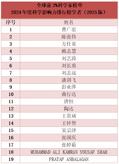 近日,美国斯坦福大学发布了全球前2%顶尖科学家榜单第8版,从800多万名科学家中遴选出各领域的世界排名前2%的科学家,覆盖22个领域和174个子学科领域。该榜单分为“终身科学影响力排行榜”(1960-2024)和“2024年度科学影响力排行榜”两个榜单。